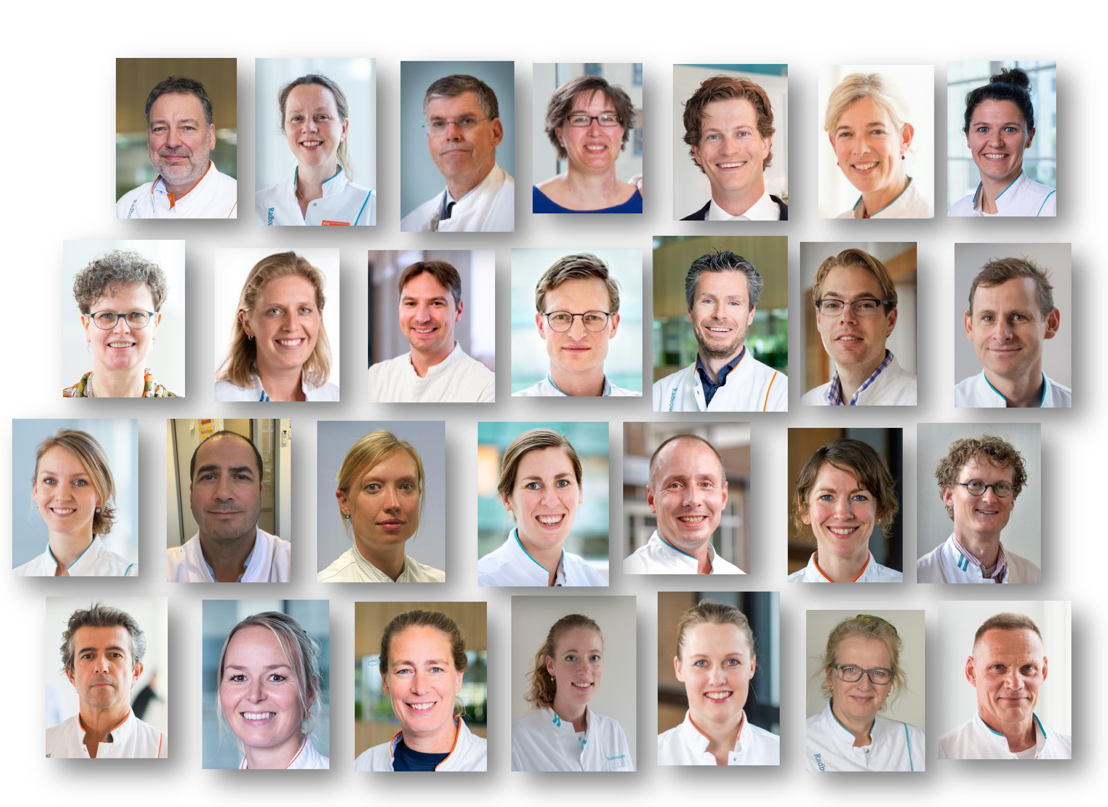 Vierde rij: Prof Dr I Malagon, kinderanesthesioloog, L Janssen, Physician Assistent kinderhematologie, Drs M. Diender, kinderhematoloog, Dr V Harbers, postdoc & arts-onderzoeker, Drs F Bouwman, onderzoeksarts,  L Rijken, bandagist, R Praster, Physician Assistent & fleboloog
